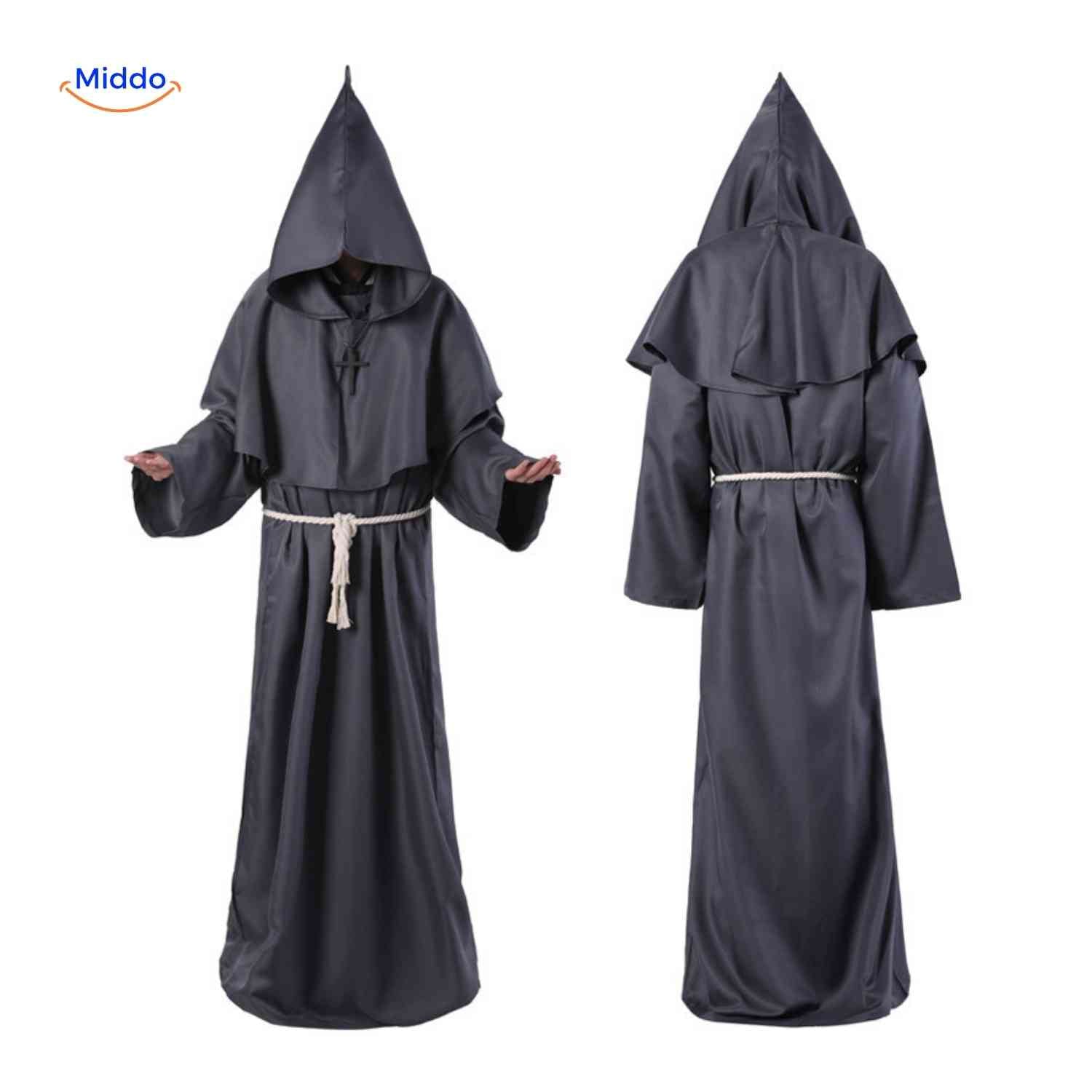 Le costume Monkara s'inspire des vêtements classiques des moines du Moyen Âge. Les manches larges, la longueur et la capuche profonde confèrent un look impressionnant. Parfait pour les fêtes, le cosplay ou pour attirer l'attention lors de pièces de théâtre ou de défilés.